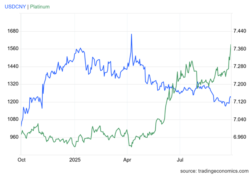 つまり、白金は人民元高になればなるほど高くなるという構図になります。