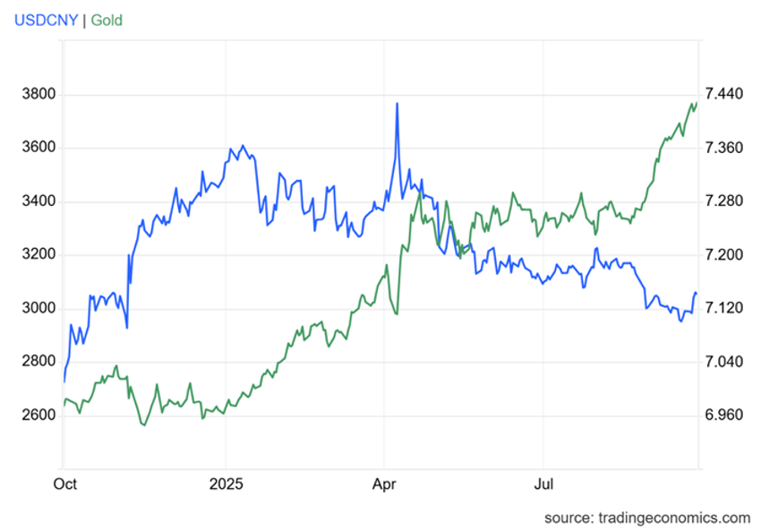 金の場合、人民元高の裏返しがドル安ですが、為替は相対的なので、ドル安の背景はユーロ高であり、決して元高ではありません。
