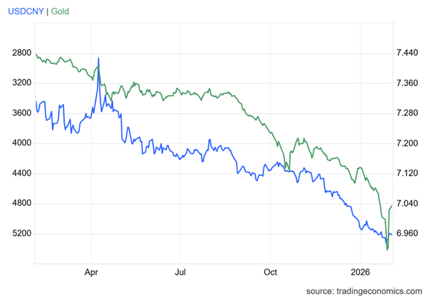 ほぼ人民元高に沿って金が上昇したことがわかるでしょう。