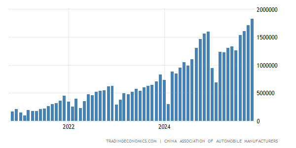 中国のEV販売台数の単体のグラフです。